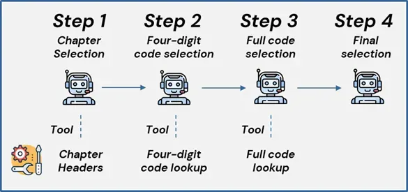 DeepSelectortakes over, diving into the next level of details. It pulls all the 10-digit codes for the selected 4-digit codes and determines which of the 10-digit codes are most relevant. - Final Selection: The