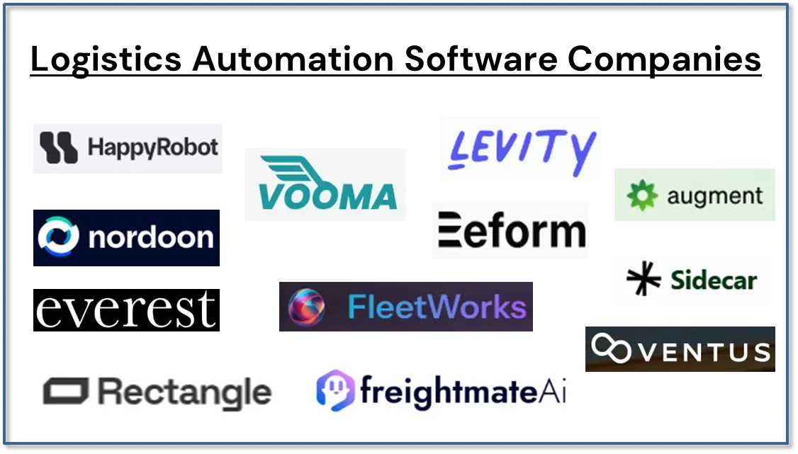 | Levity | Originally a general automation platform, Levity pivoted to the logistics sector in recent years. They provide a platform to build automations including data extraction, email automation, call automation, and an analytics offering to provide insights from your inbox. | 2019 | $10M |