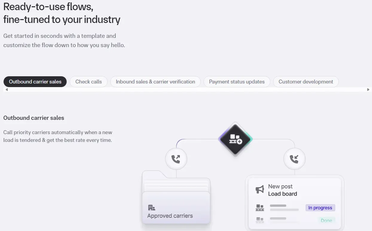 - Call Automation - AI agents that make or receive phone calls for tasks like carrier selection, scheduling, check-ins, etc.